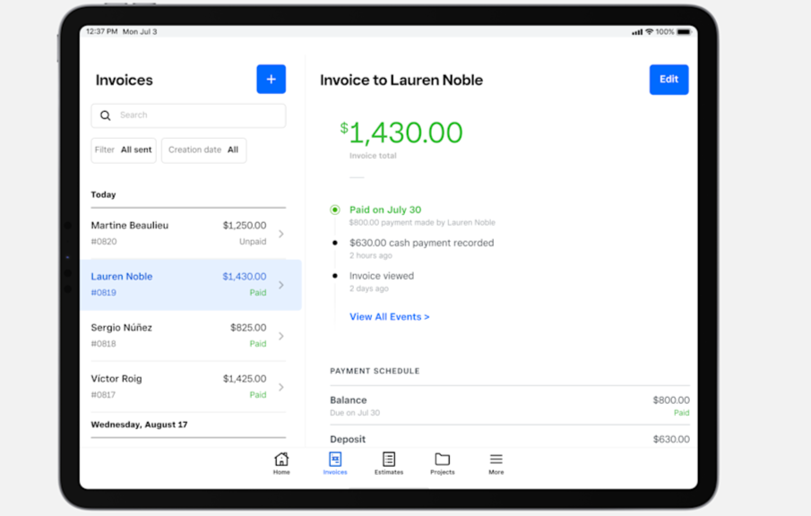 Square's mobile invoicing app allows freelancers to easily track client payments, send estimates, and monitor project balances on the go.